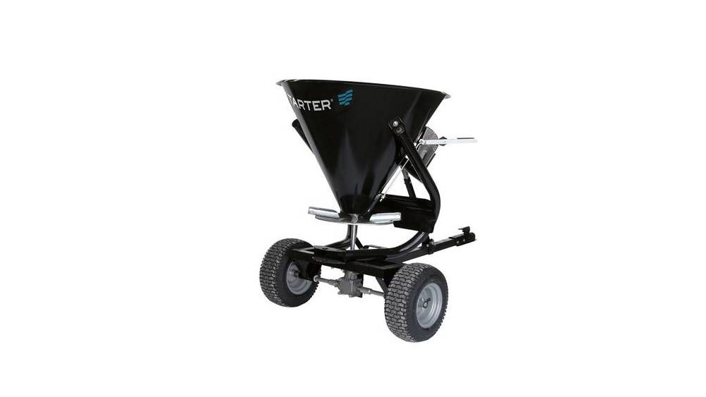 Easily spread fertilizers and new seeds over large areas with a Tarter 5-Bushel Pull-Behind Spreader/Trail Feeder! Simply hook up to an ATV or tractor.