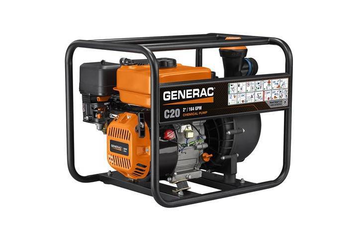 Generac’s C20 chemical pump features a sturdy design, simplified priming, fiberglass-reinforced components and carbon ceramic seals to support a variety of chemical pumping needs in almost any environment.