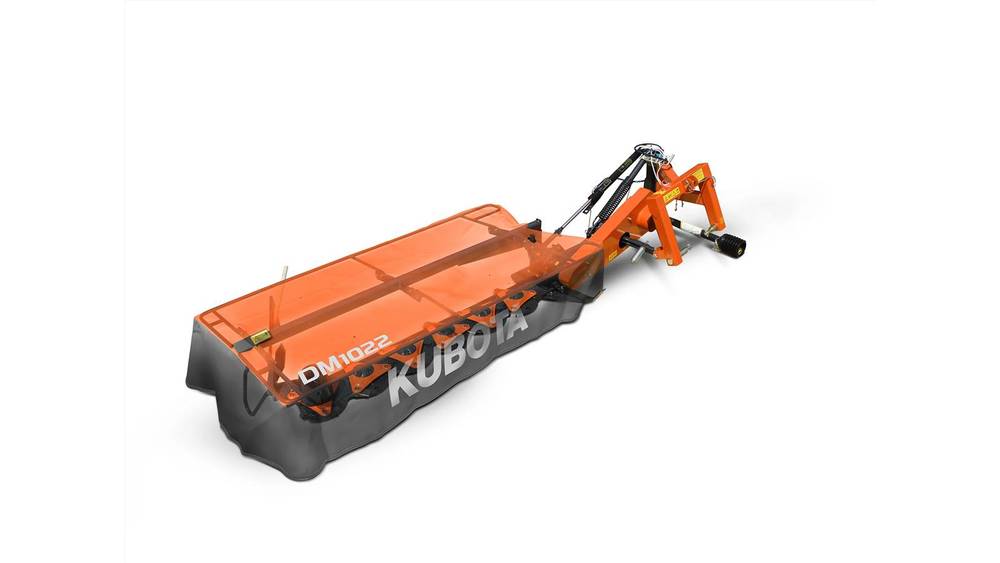 Featuring a fast lift and vertical transport mode, the Kubota DM1022 Disc Mower brings you ease of use and operation. A required minimum of 42 PTO horsepower is necessary to make ample use of the disc mower. Cutting is precise with three counter rotating discs and a 7’ 2” working width. The spring-loaded breakaway swings back when it comes in contact with an obstacle, protecting the cutter bar and ensuring your disc mower will last you for seasons and seasons to come.