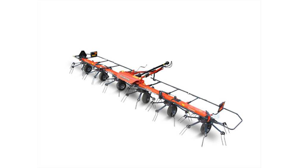 - Super-C Tine: The symmetric Kubota Super-C tines efficiently pick up the crop from two different areas. As it spreads the crop, the crop is inverted so the lower crop is placed on the top, giving a more even dry down. The crop is then spread evenly across the width of the machine for consistent drying. These tines are made of 0.39" shot-peened spring steel. Our spring coil diameter has a 20% larger diameter than conventional designs. This increases each tine service life, even when tedding heavy, high moisture crops.
