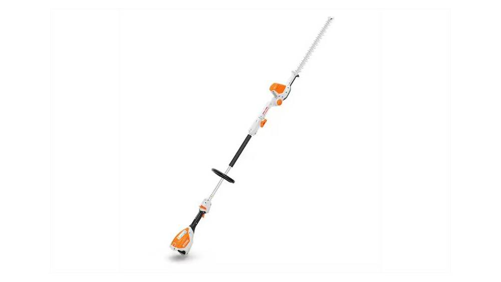 The STIHL HLA 56 is the first extended-reach hedge trimmer within the AK System. Powered by the same 36-volt lithium-ion battery as other products within the AK System, this hedge trimmer provides homeowners with more versatility by combining the benefits of a battery-powered product with the ability to accomplish difficult trimming tasks. A high cutting speed of 2,800 strokes per minute allows for clean and efficient cutting, even when dealing with larger branches. At 11.1 pounds (with AK 20 battery) and with an articulating cutting blade offering a 135-degree range, the HLA 56 leverages optimal cutting performance with the lightweight portability needed to get the job done.
